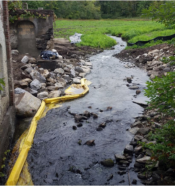 Kleinschmidt initiated the project by conducting a due diligence assessment to identify any project data gaps and evaluate any visible conditions that could impact the project design, schedule, or cost. We completed a structural assessment based on an onsite structural condition inspection of the dam that included observations of the dam, spillway, gatehouse, and abutments to determine structural deficiencies and develop designs for corresponding repairs. We conducted a wetland delineation and vernal pool survey to support the permitting efforts. Kleinschmidt created and calibrated a HEC-RAS model of the existing and proposed conditions that was used to assess fish passage requirements, evaluate impacts on flooding, and size material for the restored stream channel. Kleinschmidt developed a design suitable for inclusion in the permit applications and finalized the design following comments by project partners and regulators. The design objective was to restore aquatic connectivity (for alewives, American eels, and resident species), maintain the historic powerhouse, and reduce the owner’s risk exposure, while conforming to standard engineering practices for dam decommissioning, including sequencing of removal, reuse of onsite materials, and natural channel design concepts. The design included the removal of the spillway and west abutment, design of a restored stream channel in the immediate vicinity of the dam, and preservation of the existing powerhouse.