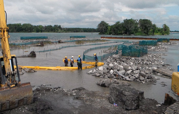 The New York Power Authority (NYPA) sought to restore the former Frog Island area in the Upper Niagara River as part of their compliance efforts associated with Federal Energy Regulatory Commission (FERC) relicensing of the Niagara Project. NYPA desired to restore this former marsh/island complex and provide improved wetland habitat at this location, which had been lost due to extensive gravel mining and local erosion.