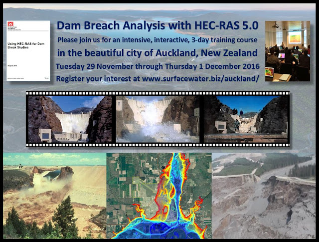 We had a great turnout for our first HEC-RAS 2D course in Melbourne back in April, and I’m excited to be returning to the southern hemisphere in November to teach a 3-day HEC-RAS Dam Breach course to be held in Auckland, New Zealand.