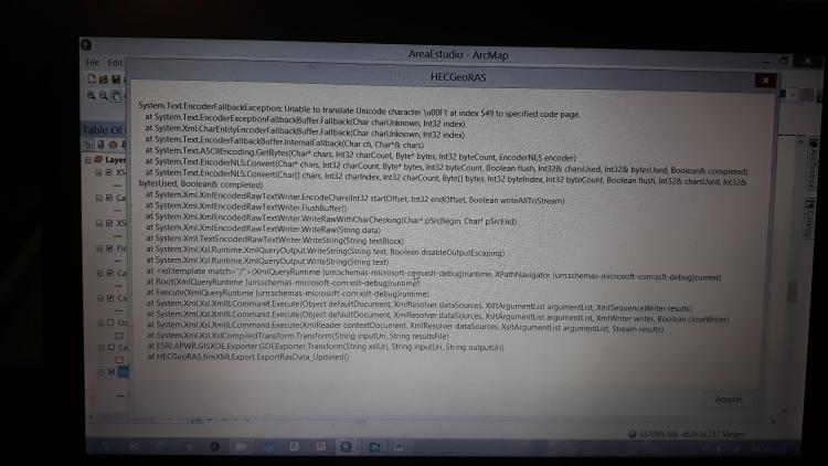 Hola, ando haciendo una Modelación y al momento de exportar los datos de ArcGis com HecGeoRas me sale ese mensaje y el archivo aparece guardado pero al momento de abrir HecRas y importar el archivo despues de seleccionar Sistema Internacional le doy Next y aparecen las celdas en blanco como si el archivo estuviera vacio.