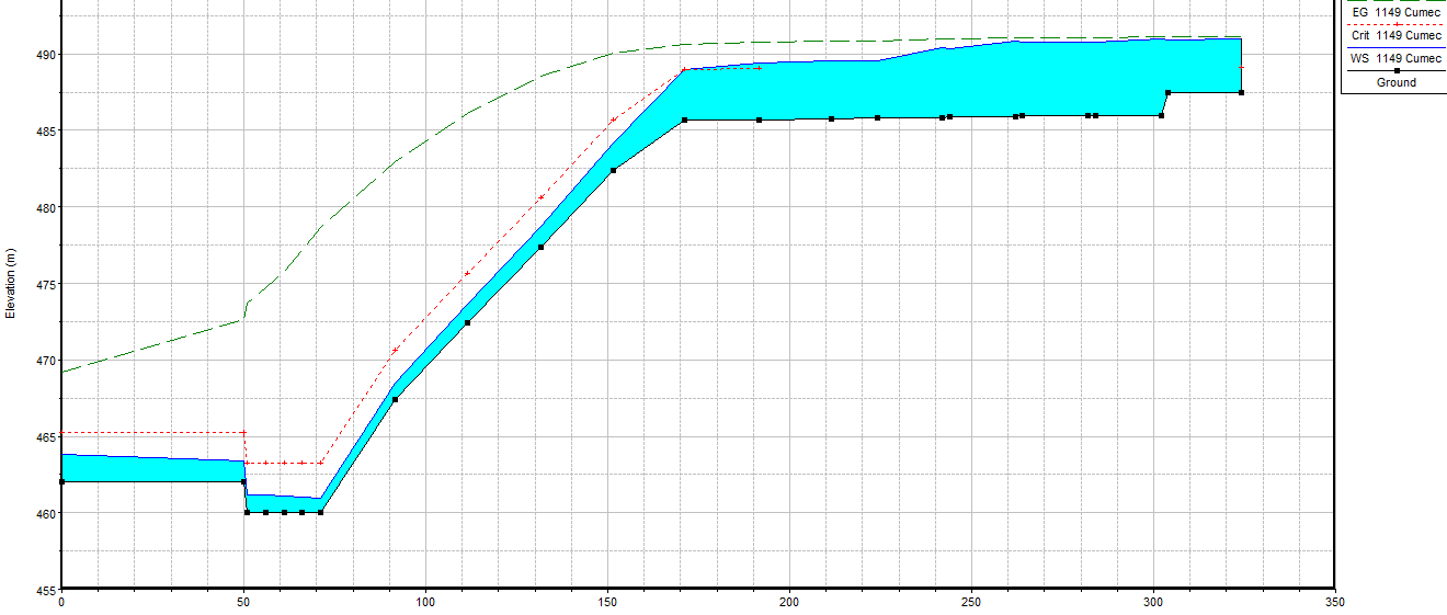I don’t think that RAS computes an impact force. It is only looking at friction losses, expansion/contraction losses, and changes in elevation. It doesn’t have an option to take into account the losses from high velocity spillway flow hitting baffle blocks, for instance.