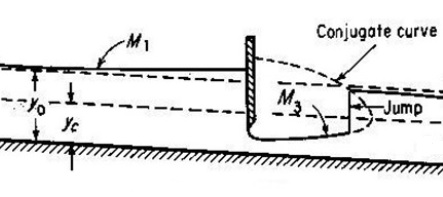 I was trying to model the flow under a sluice gate (mild slope rectangular channel) in order to reproduce the transition through the critical depth as shown in the picture but I still did not succeed.