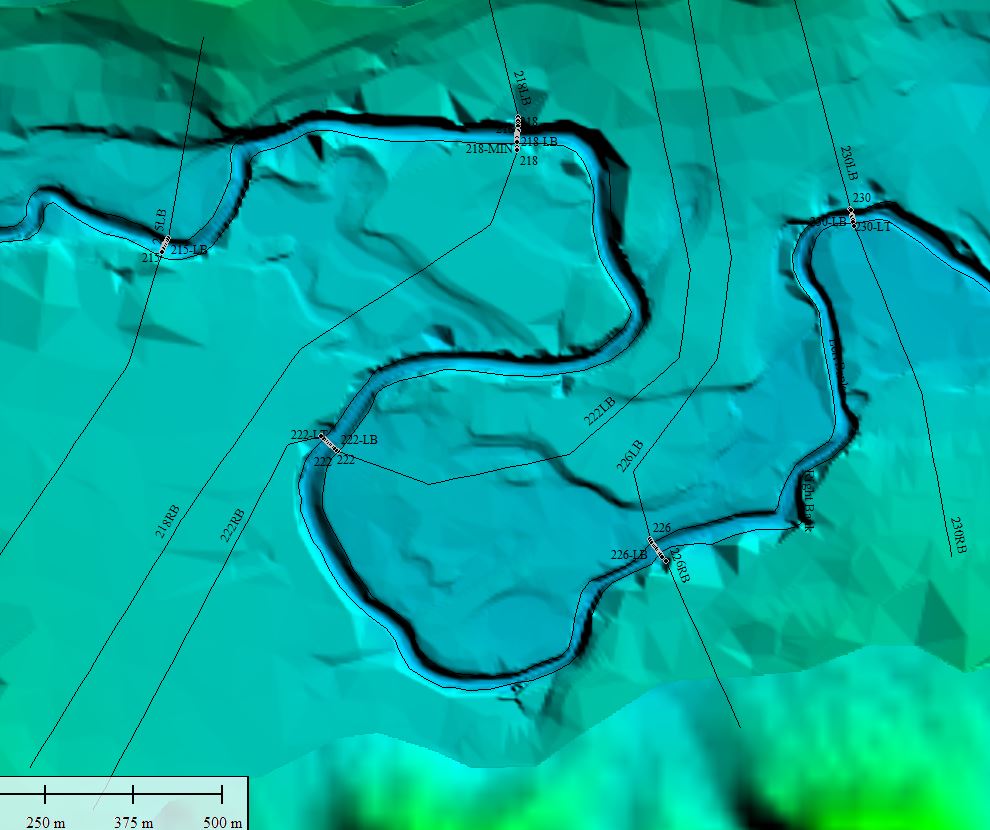 Having weird, “doglegged” cross sections is not a problem in and of itself. The thing to keep in mind is that each cross section has a single energy grade and that you generally want to draw the cross sections such that the flow is (to the extent reasonable possible) perpendicular along the cross section.