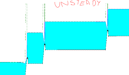 First image is from steady analysis. Q=2.5 m3/s. Second image is from unsteady analysis . Unsteady analysis is a copy of steady indeed. Q is steady, all other is too. However just after start of the simulation (t=1 s) things goes wrong.